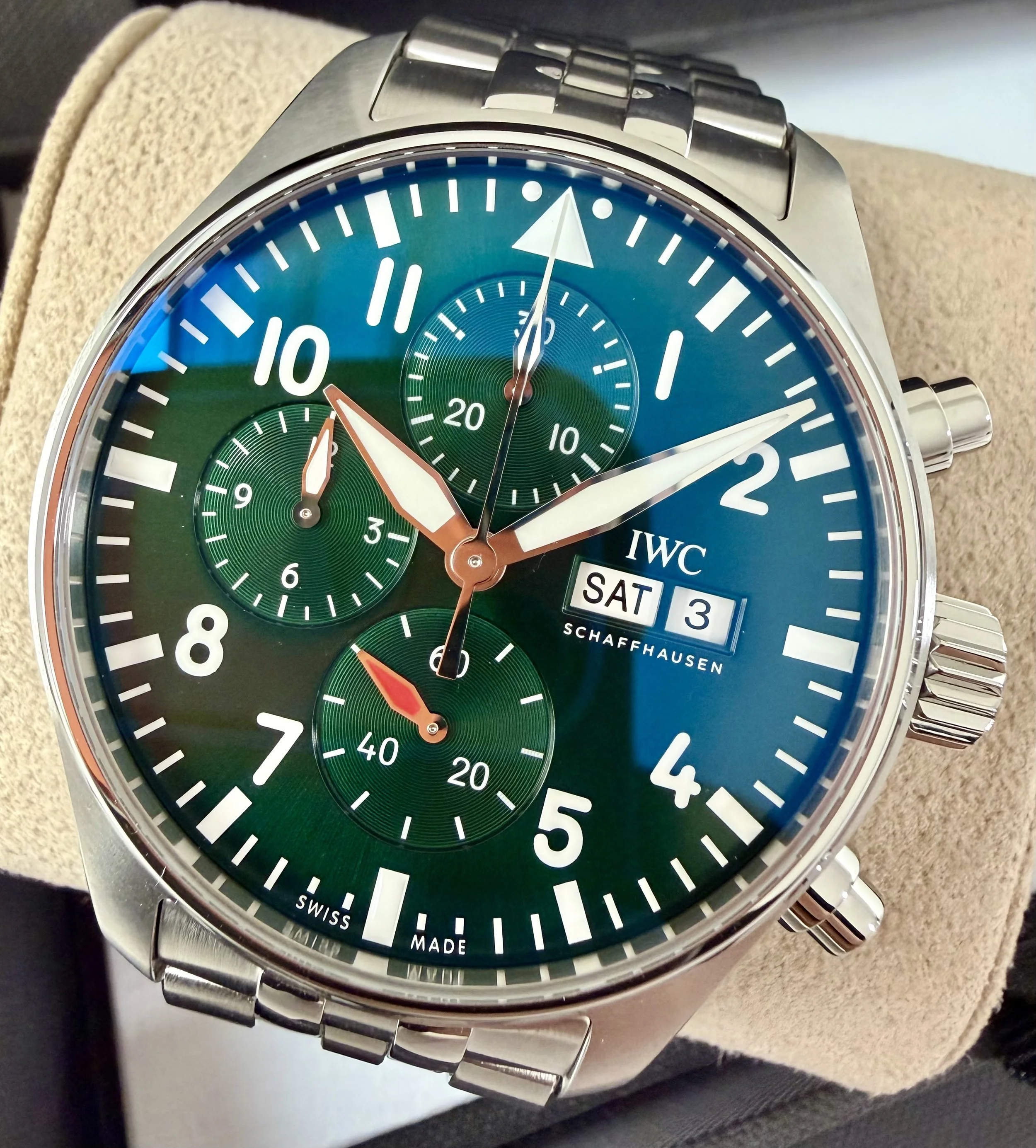 Categories: All Audemars Piguet Bell & Ross Blancpain Breitling Cartier Girard Perregaux Grand Seiko H. Moser & Cie Hublot IWC Schaffhausen Norqain Omega Panerai Patek Philippe Rolex Tag Heuer Tudor Ulysse Nardin Vacheron Constantin Zenith All / IWC Schaffhausen Quick View IWC Pilot’s Chronograph 43mm Green IW378006 Complete Set 2025 Unworn $6,750.00 Quick View IWC Pilot's Chronograph Watch Bronze - IW388109 - Blue Dial Complete Set 2022 $5,500.00 Quick View IWC Aquatimer Collectors Forum Edition Bronze Limited IW341001 Complete Set $7,000.00 Quick View IWC Portugieser Blue - IW358305 - 40mm Complete Set 2022 $5,200.00 Quick View IWC Ingenieur 40mm IW328907 Blue Dial 2025 Complete Set $9,200.00 Sold out Quick View IWC Ingenieur Stainless Steel White 40mm IW328902 - 2024 Complete Set Silver $9,300.00 Sold out Quick View IWC Ingenieur Men's Black Dial Watch IW328901 Automatic 40mm Steel Case Complete $8,250.00 Sold out Quick View IWC Aquatimer Chronograph “Expedition Jacques-Yves Cousteau” - IW376805 - NEW $5,450.00 Quick View IWC Big Pilot “Le Petit Prince” 46mm Blue Men's Watch - IW501002 - 7 Day Power $6,500.00 Quick View IWC Big Pilot TOP GUN 'Mojave Desert' Ceramic Brown Dial 46mm IW506003 Complete $10,500.00 Quick View IWC Da Vinci Chronograph Blue Men's Watch - IW393402 - 42mm Laureus Limited Edition $6,500.00 Sold out